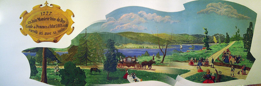 Cette peinture représente la visite faite dans notre région le 23 juin 1777, par Louis Stanislas Xavier, comte de Provence, dit Monsieur, frère cadet de Louis XVI.