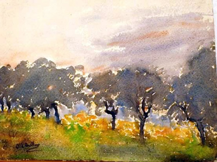Allée d’oliviers - Aquarelle - Collection particulière
