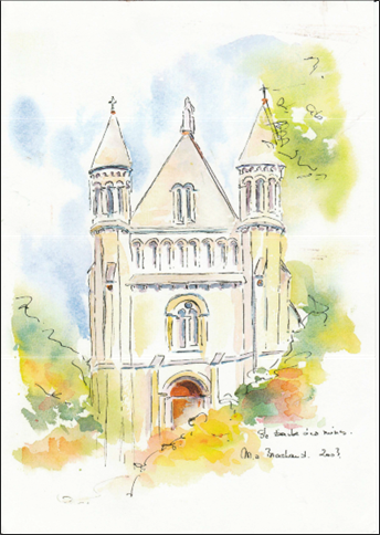 Vous arrêtant au parking situé à proximité, vous vous dirigez par un étroit sentier vers cet édifice remar- quable et notez sur la façade, un bandeau en ardoise, au- dessus du portail d’entrée, sur lequel est inscrit : A la mémoire d’Emmanuel de Las Cases.