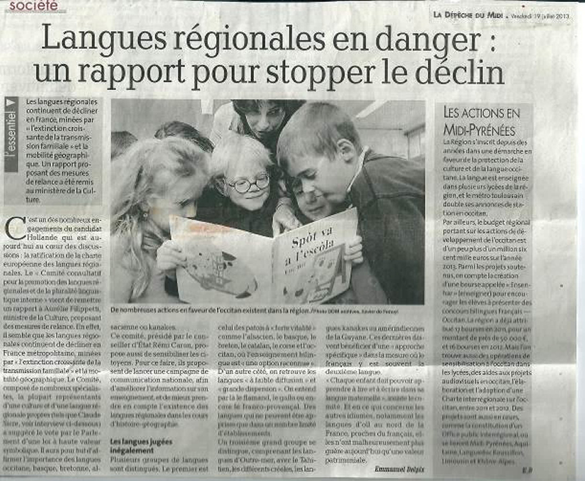L’Occitanie, région regroupant le tiers sud de la France, représente bien, à ce titre, l’archétype d’une communauté ou d’un peuple lié par une langue et une culture commune. Au cours des siècles, surtout dès la Renaissance, la politique d’extension de la langue française sur notre pays a conduit à marginaliser les langues régionales souvent qualifiées de « Patois » d’en réduire, voire d’en supprimer l’usage. Aujourd’hui, à l’heure de la mondialisation, des flux migratoires, du développement exponentiel du numérique, des moyens de communication et d’information en temps réel, la volonté de pérenniser et transmettre une langue régionale peut paraître désuète, anachronique voire autarcique. Il n’y a pas dichotomie entre l’attachement aux fondements identitaires, au passé créateur et l’ouverture au monde ainsi que le respect, la reconnaissance et la défense de la langue française. Les deux marchent de concert en conciliant évolution, modernité, partage et ancrage sur le socle fondateur. Cette volonté de parler, transmettre, enseigner la langue régionale, donc s’enseigner afin de s’aimer s’estimer, comme disait Charles Péguy, ne participe pas d’une tendance à un fédéralisme régional autonome, même si au cours de l’Histoire elle a pu apparaître, en corollaire au désir de « vivre et travailler au Pays », face à la volonté hégémonique de la langue nationale dans la droite ligne du centralisme jacobin de notre pays. Elle répond au seul désir de maintenir la langue d’une région, issue d’une culture et d’une civilisation particulièrement évoluée « parce qu’un peuple qui possède sa vie propre doit posséder aussi une langue et une littérature bien à lui ».