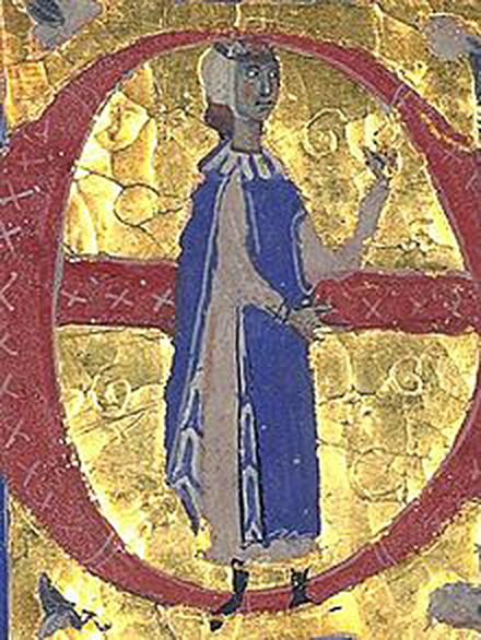 - le manuscrit H copié en Italie au XVIème siècle qui, en plus des textes propose huit enluminures de femmes troubadours