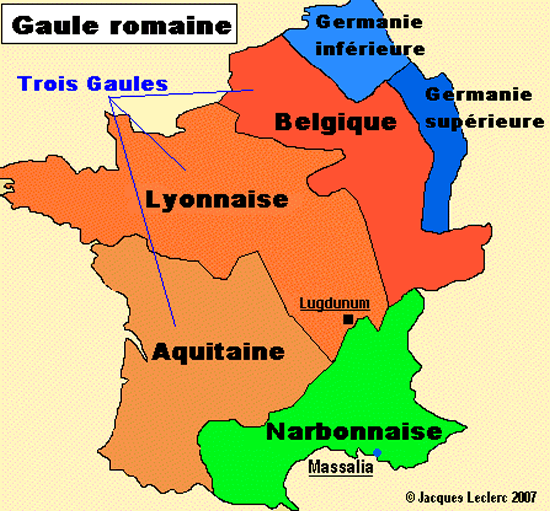 Au IVème siècle les provinces du sud sont désignées par le vocable « Aquitania », celles du nord sont appelées « Les Gaules ».