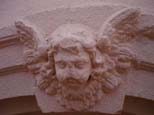 en 1893 : revêtement de la façade, pose d'une bible ouverte en pierre sculptée au dessus de la porte.