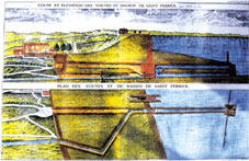 En 1853 est construite la voûte (aqueduc) immergée à l’intérieur du barrage, de la vanne supérieure de la Badorque.