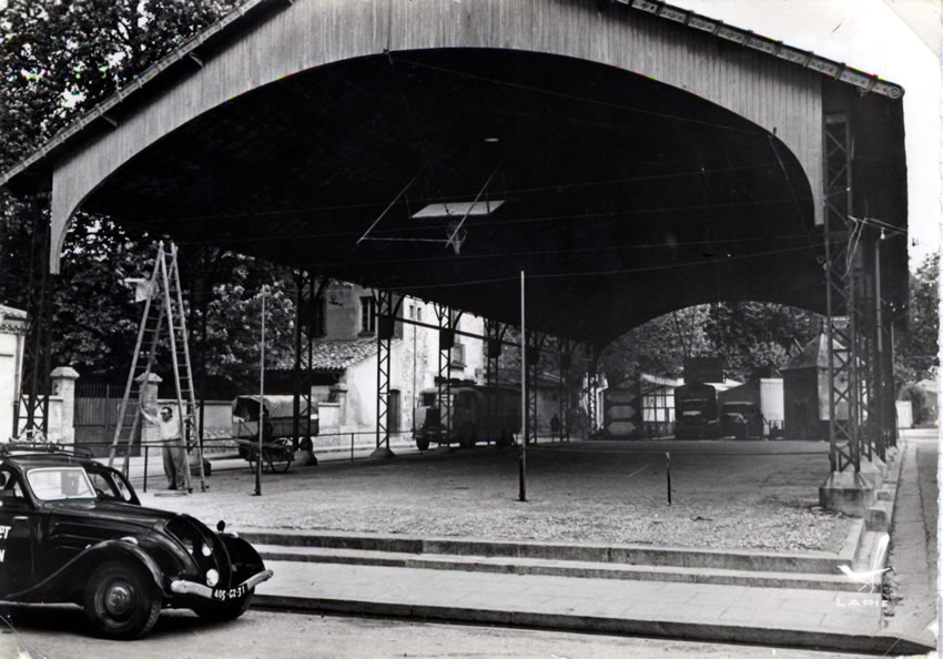 On décide donc de construire une charpente métallique couverte en tuiles à la « place de la Mission où se tient le marché aux porcs ».