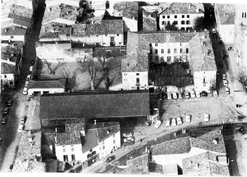 Dans le mur du fond, on distingue une petite porte … Dans les années 60, nous nous en rappelons encore , c’était l’entrée de l’école maternelle qui s’ouvrait sur une grande cour où « trônait » un immense arbre qui à l’époque avait fait l’office d’un classement « monument historique » (par Madame Robert, institutrice !).
